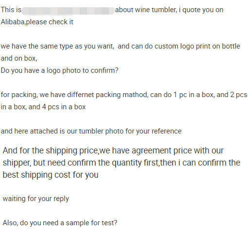 In this section, we’ll show you how to develop quality RFQs through a real case. Talking with our friend Anna, an Amazon Seller in the USA, she’s willing to share her RFQ experience. Once she was looking for stainless wine tumblers and she’d like to post an RFQ to collect quotes. As Anna told us, she received 10 quotes within just 10 mins; below is how she started her story.
